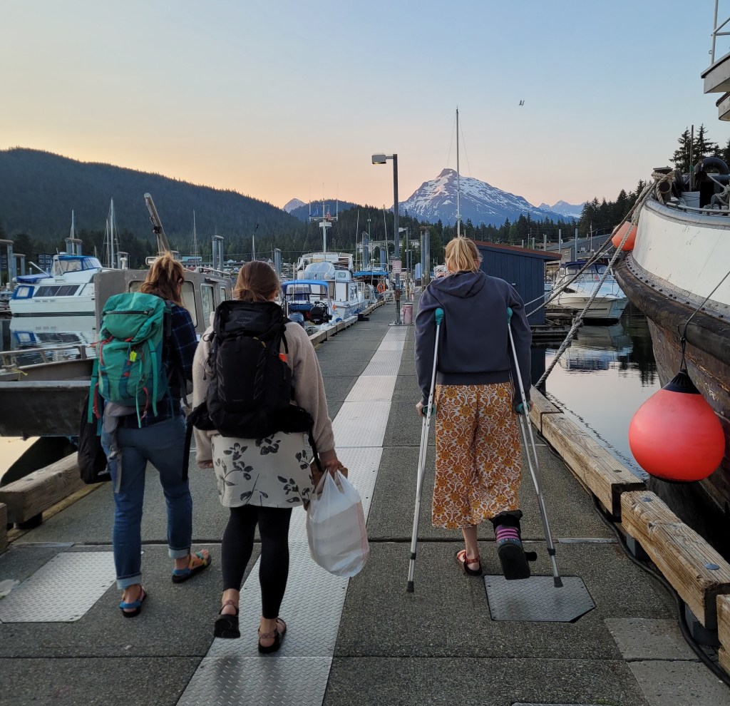 At the start of April I dislocated and broke my ankle requiring surgery and some serious new hardware. I missed two weeks of school where I could barely get out of bed, and returning to class involved navigating Seattle public transit in a wheelchair. My life became limited to paved surfaces, which often required help from others. I couldn’t drive and I needed assistance getting the wheelchair up and down the stairs to my house. Cooking was generally hazardous, and cleaning involved a bit of one-legged acrobatics. Switching to crutches after a month helped create some independence as I could crutch up to a mile at a time with the help of some anti-chafing lube (thanks REI). Three months post-surgery, I had survived the quarter and was preparing to embark on our trip to Alaska. This trip marked my last week on crutches and my first time leaving the continental US since the start of the pandemic.
