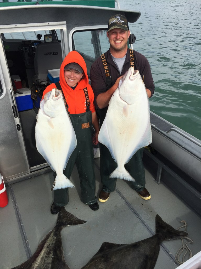 Halibut fishing_photo by Kelsey Cruz Published July 23, 2017 at 2448 × 3264 in Outreach Cheryl Barnes (PhD student) and Ben Huntley (charter fishing captain, Shelter Lodge) displaying Pacific Halibut caught for a study investigating their diets in Southeast Alaska. Photo by Kelsey Cruz. Like Loading...
